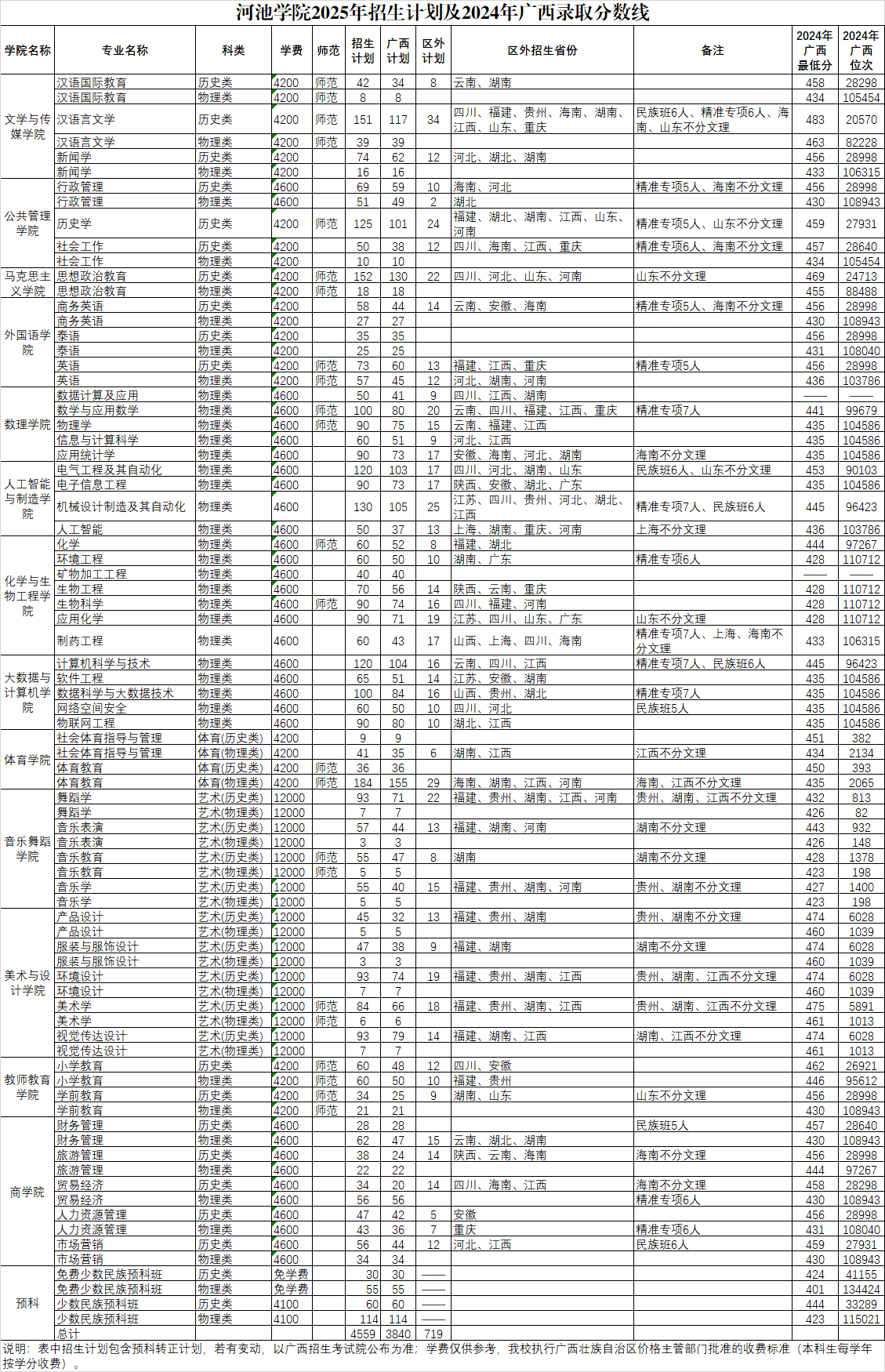 河池学院2025年招生计划及2024年广西录取分数线