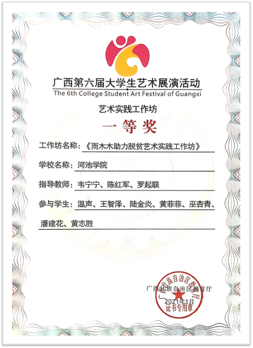 广西第六届大学生展演获奖证书