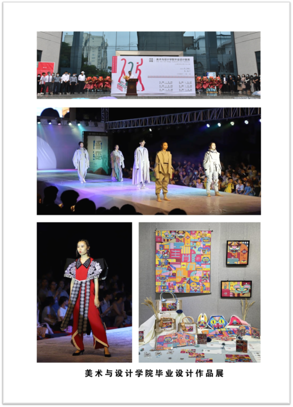 学院注重内涵建设和特色发展,着力构建具有地方特色的应用型人才培养模式,先后与19个单位签订校企、校地、校行合作协议,开展产教融合,探索协同育人机制。构建第二课堂联动机制,取得显著成效。开辟美术与设计论坛,以专业为单位举行美术与设计沙龙;根据专业特点,结合地方少数民族文化资源,通过专业艺术工作坊和项目驱动式实施创新创业活动。学院每年举办毕业设计联展和课程教学成果展、艺术采风展等系列展览活动,课程思政建设了取得了显著成效,学生专业实践朝着个性化,应用型的方向发展。学院学科专业竞赛成果显著,曾连续三届指导学生荣获全国大学生艺术展演书法全国一等奖,2021年获第六届大学生艺术展演艺术实践工作坊类二等奖。获得省部级以上的学科竞赛奖项达200余项。书法教师卢和华老师曾获全国书法最高奖项——兰亭奖。书法教师指导学生参加全国大学生艺术展演曾连续三届获得书法一等奖;视觉传达设计专业教师覃晓慧的陶艺作品获得广西工艺美术类最高奖项——“八桂天工奖金奖。