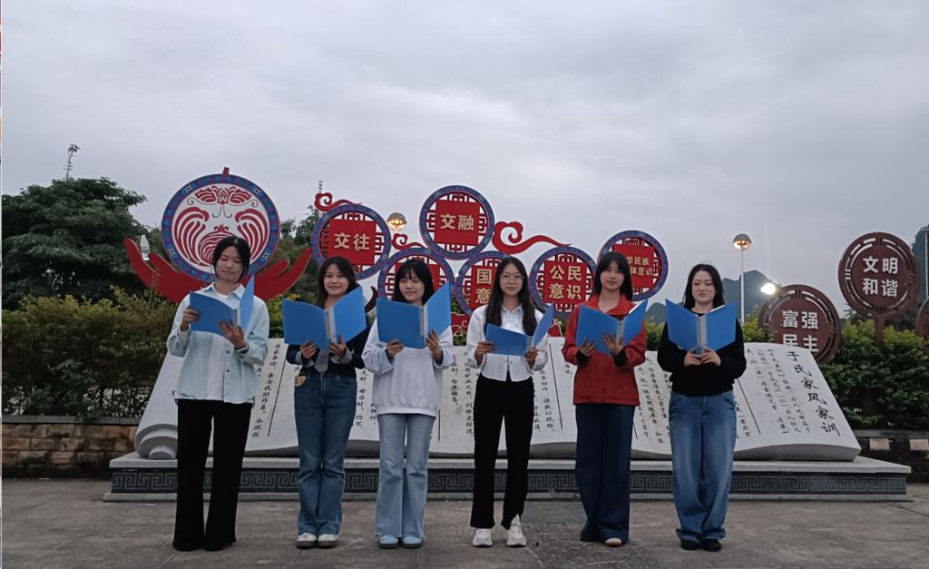 为深入学习贯彻党的二十届四中全会精神,扎实推进思政课实践教学改革创新工作,10月29日下午,马克思主义学院带领2023级师生代表162人前往罗城仫佬族自治县开展“学习习近平文化思想”专题实践教学活动。本次集中实践活动围绕参观罗城仫佬族自治县成立40周年成就展示馆、仫佬族博物馆、走罗城“于公”古道和中华廉政文化园等展开。
