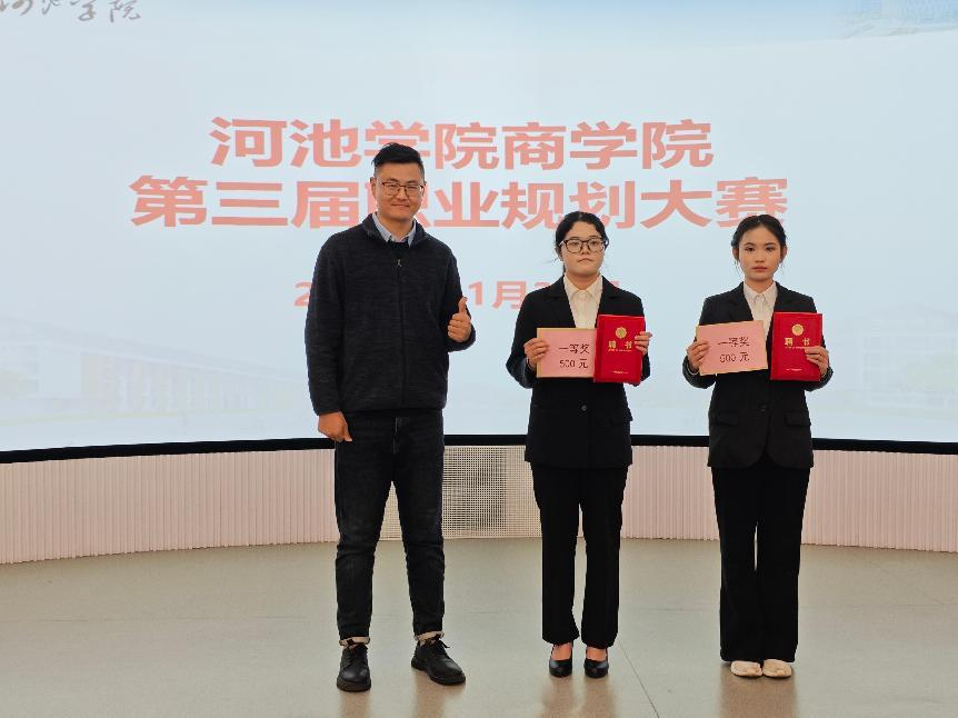 11月30日下午,商学院于西区致远楼一楼多功能厅开展第三届职业规划大赛。我院团委书记王忠文、辅导员袁凤柳、梁鹏辉出席大赛并担任评委,我院各专业代表参加此次大赛。大赛由我院团委学生会文艺部负责人王璐主持。