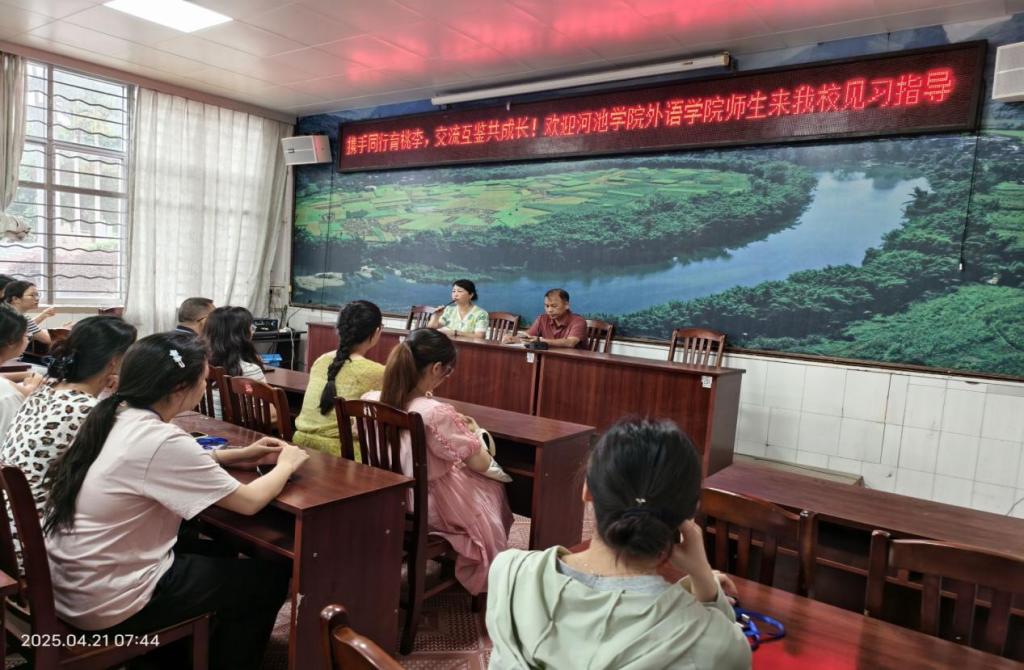2025年4月21日—25日,学院副院长李艳飞、综合教研室主任卢银燕以及青年骨干教师袁静老师和郑新凤老师,组织英语223班和224班学生前往桂宜高中开展教育见习活动。