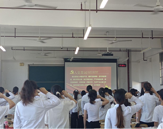 2022年7月1日下午5点半,我院在格致楼602举行新党员入党宣誓暨老党员重温入党誓词仪式,本次仪式由学生第一党支部书记张雁主持。