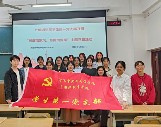 2023年10月27日晚上,我院学生第一党支部在格致楼601开展以“树廉洁家风、育优良党风”为主题的党日活动。活动由党支部书记彭万林老师主持,第一党支部全体成员参与学习。