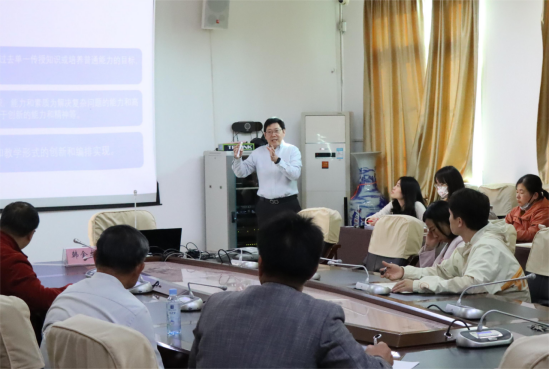2023年11月29日下午,华南理工大学韩金龙教授莅临我院讲学,在东区行政楼206会议室开展“一流课程建设视域下的课程思政”专题讲座。讲座由我院党委书记韦合主持,全体教职工参加。