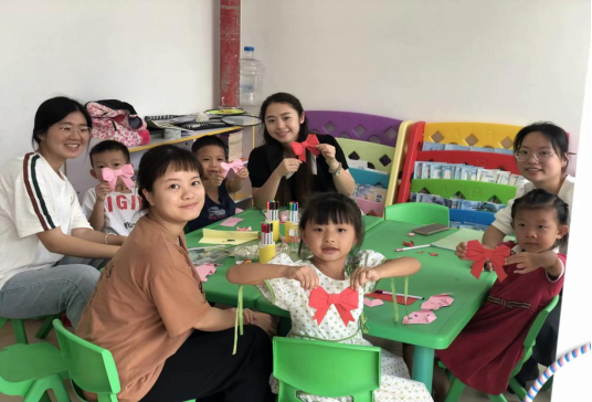 7月7日早上,晨曦缓缓拉开新一天的帷幕,志愿者们提前到达同福社区儿童之家布置教学区域。社区的小朋友们非常礼貌地向志愿者打招呼,他们脸上洋溢着的快乐感染了每一位志愿者,为志愿者新一天的实践注入满满活力。根据年龄及年级的不同,志愿者将社区的小朋友们分为小学组和幼儿组,进行不同课程内容的讲授。