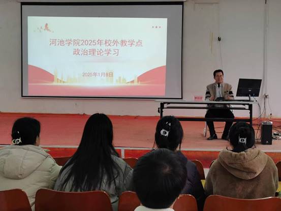 为了进一步规范和加强我校高等学历继续教育管理工作,提高办学质量,深入了解我校高等学历继续教育校外教学点的办学和招生情况,进一步提升校外教学点的管理水平和服务能力,2025年1月8日上午,学院院长罗日才一行3人前往河池信息工程学校开展校外教学点检查评估工作。东华教育集团副董事长、河池信息工程学校校长刘程伟,河池信息工程学校党支部书记原永志、成教部教师覃正隆参加了本次检查评估工作。