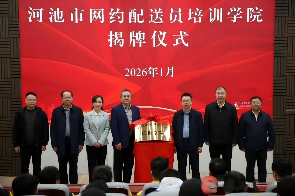 1月30日,河池市网约配送员培训学院在河池学院正式揭牌成立。该学院是广西首个专注于网约配送员群体的专业培训学院,由河池市委社会工作部牵头,联合河池市总工会、河池学院、河池市市场监管局等单位共同建设,致力于探索新就业群体党建路径,打造集技能培训、政策咨询、权益保障、思想引领于一体的综合服务平台,为网约配送员、快递小哥等新就业群体搭建成长成才的“温馨家园”。