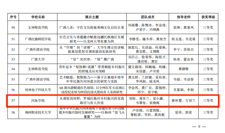12月24日,2025年广西高校大学生思政课研究性学习成果展示大赛获奖名单公布,我校两支参赛团队凭借鲜明的主题立意、扎实的实践调研与深度的理论融合,在本科组角逐中均荣获三等奖。