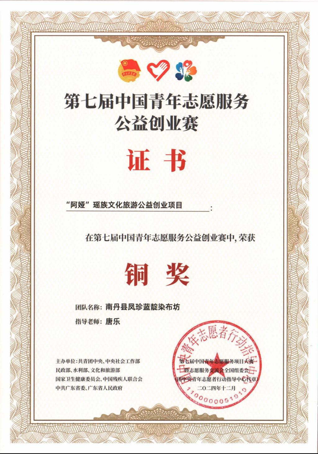 由共青团中央、中央社会工作部、民政部、水利部、文化和旅游部、国家卫生健康委员会、中国残疾人联合会、广东省委省政府联合主办的第七届中国青年志愿服务公益创业赛全国总决赛于2024年11月30日至12月2日在广东省汕头市举行。我院教师唐乐指导的“‘阿娅’瑶族文化旅游”项目在大赛中获得铜奖。这是河池市志愿服务项目斩获的首个全国性荣誉。该项目是我院社会工作系主动对接地方,积极服务地方经济社会发展,为河池市总结志愿服务经验,探索志愿服务项目化、品牌化路径的积极尝试,为推动河池市志愿服务发展贡献了专业力量。(作者:唐 乐 校对:钟卓良、覃露兴 审核:韦 福)