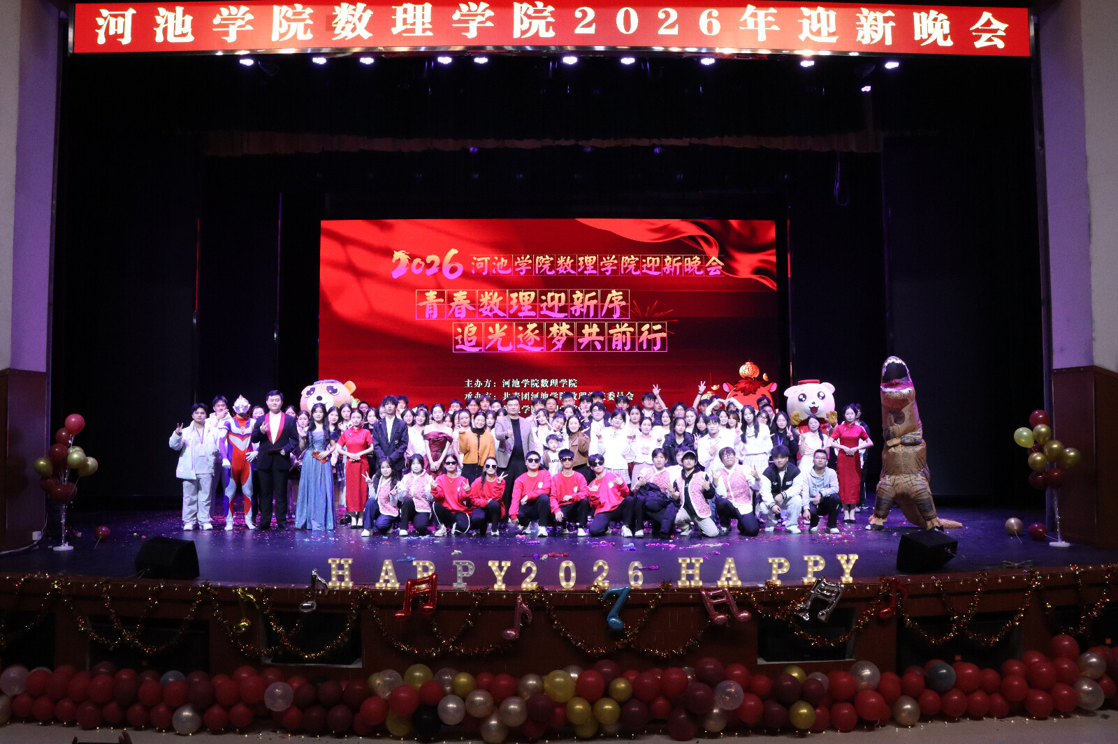 最后,在温馨欢快的节目串烧《数理一家人》中,晚会缓缓落下帷幕。本次晚会不仅是一场视听盛宴,更生动体现了数理学院大家庭的凝聚力与向心力,吹响了全体数理人在2026年携手前行、共谱新篇的奋进号角。(作者:高智源 摄影:韦炯坊、刘小敏校对:石宁审核:罗日才)