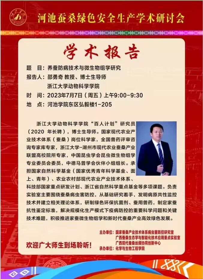 【学术报告】家蚕微粒子病防控及细胞生物学研究