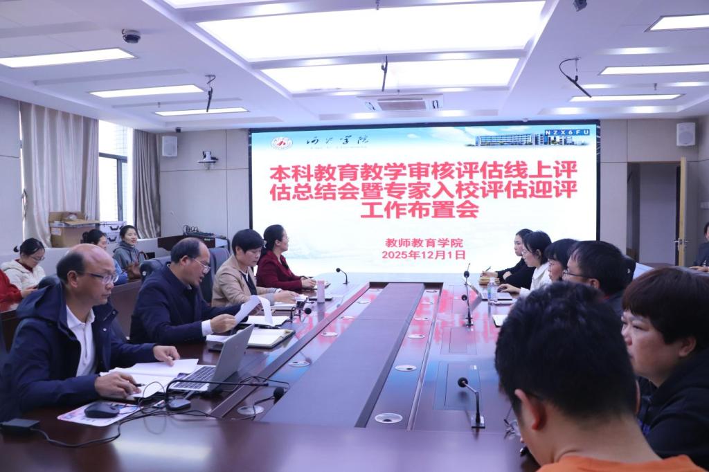 12月1日,教师教育学院召开本科教育教学审核评估线上评估总结会暨专家入校评估迎评工作布置会。全体教职工参会。