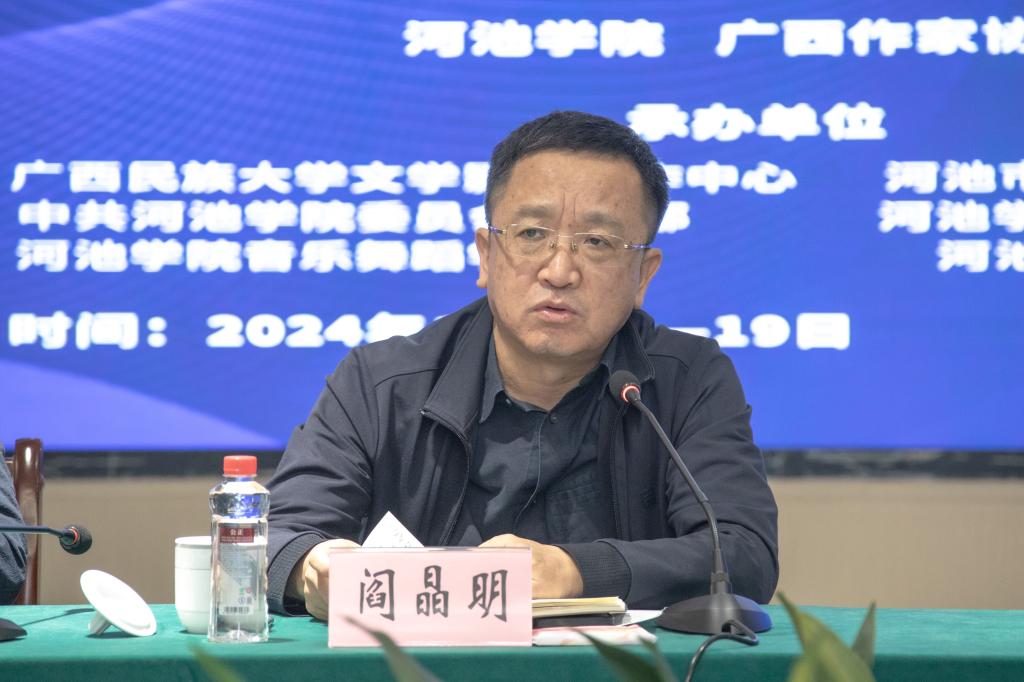 阎晶明对“河池作家群”的发展壮大和取得的成就给予充分肯定,对本次研讨会的召开表示祝贺。阎晶明说,“河池作家群”一直以来以为人民写作为中心,深入一线,深入生活,自觉投入、用心创作,推出大量优秀作品,形成了一支代际传承明显、多民族特性、多体裁创作且能同时发力的作家队伍,创作出一批高质量的文学精品力作,取得了不俗成绩。