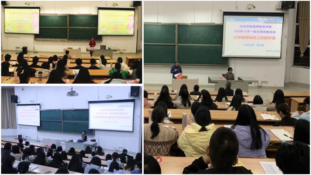 学院重视与基础教育深度衔接,以专业引领基础教育改革,以教研培训服务基础教育办学质量提升,以一线实践砥砺本院人才核心素养养成,形成了“地方教育行政部门、高校、一线学校”三位一体,“高校教师、一线教师、师范生”三级联动,集培养、培训、研究和服务一体化的教师协同培养机制,反哺专业发展。学院通过与宜州区第一小学、宜州区实验小学协同共建,通过卓越教师教育实验班、卓越教师工作坊、“双导师制”等培养载体,推进教师教育的高质量发展,开创民族地区、革命老区教师教育发展的新格局。常年邀请小学校长、特级教师参与人才培养过程,创设一线名师讲堂、教学科研交流等形式,在见习、实习、研习“三习”等长效合作方面成效显著。2021年“以卓越小学教师工作坊为依托的小学教师专业发展模式的研究与实践”获广西基础教育自治区级教学成果二等奖;2021年“民族地区地方高校小学教育专业卓越师范生双导师协同培养模式的研究与实践”获河池学院高等教育教学成果特等奖。