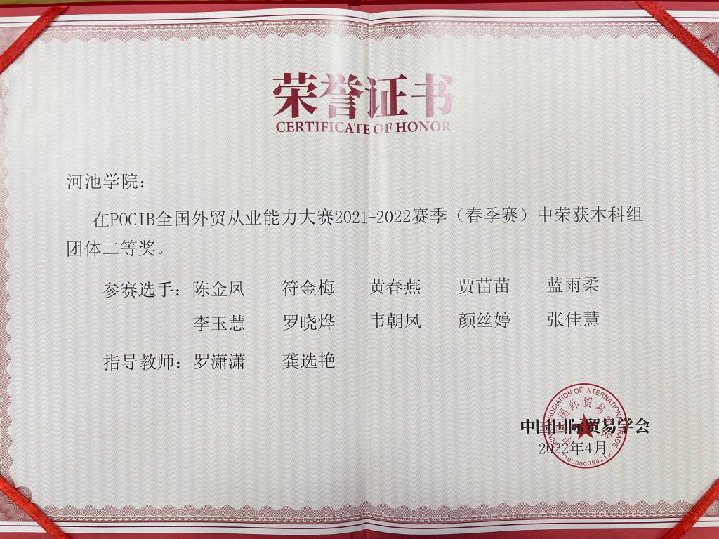 (学生团队在2022POCIB全国外贸从业能力大赛获奖)